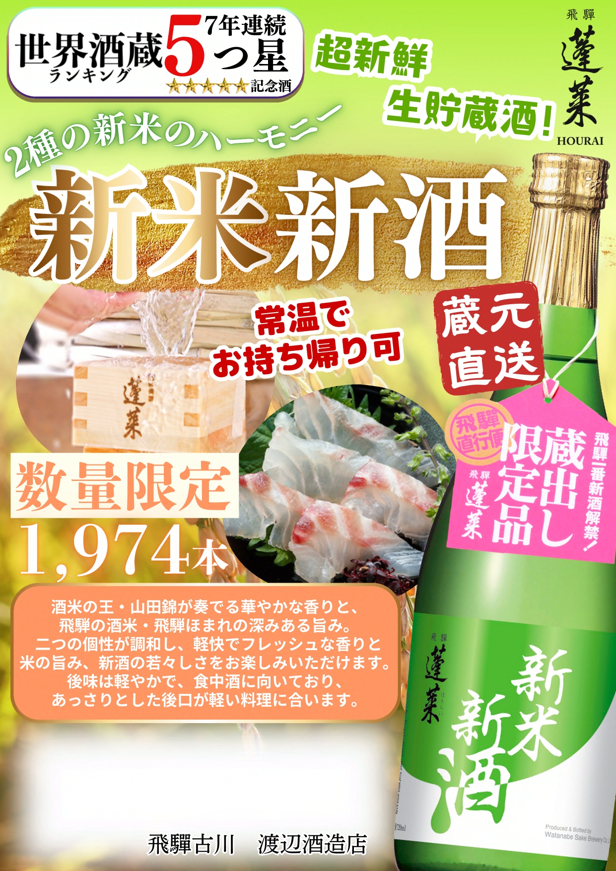 ★新商品★蓬莱 純米吟醸 新米新酒 生貯蔵酒