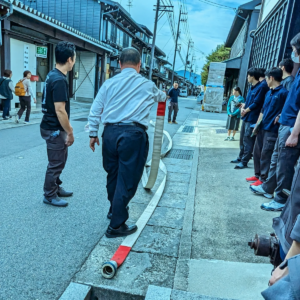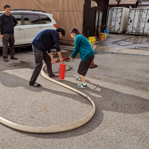 渡辺酒造店の蔵は、木造の歴史ある建物なので、火災訓練はとっても大事です。