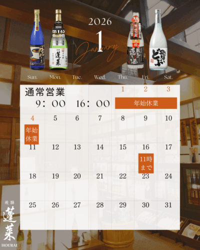 年末年始は、ぜひ蓬莱の日本酒をお楽しみくださいませ。